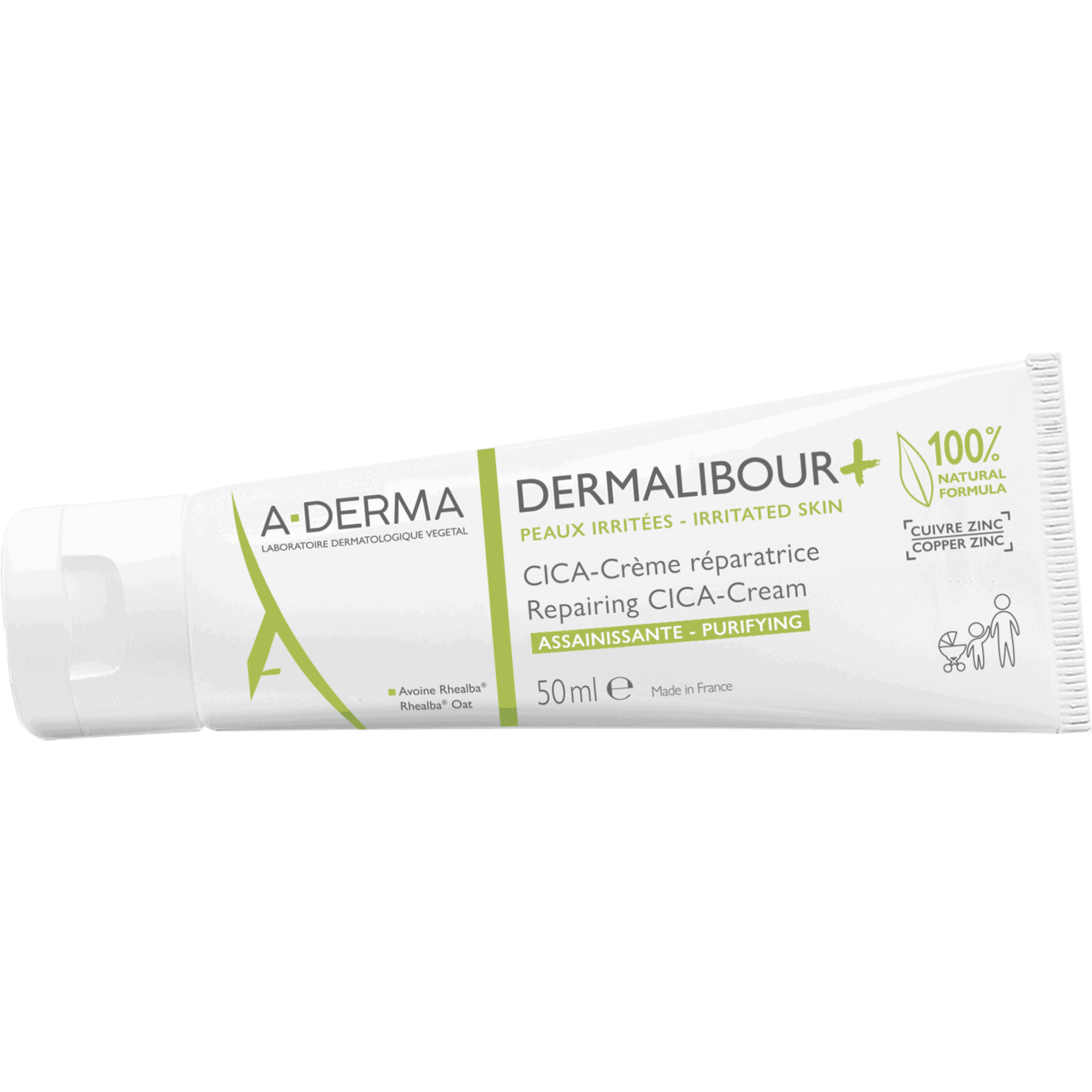 Aktivni sastojci Dermalibour kreme od kojih je glavni sastojak puni ekstrakt Rhealba zobi, umiruju i regeneriraju kožu, a soli bakra i cinka štite oštećeno područje od pojave infekcija. A-Derma Dermalibour krema sigurna je za primjenu kod dojenčadi i male djece, kao i kod odraslih.