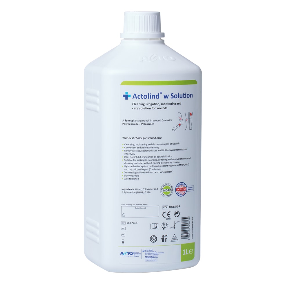 Actolind w Solution je otopina za ispiranje, čišćenje, vlaženje i njegu koja se koristi zajedno s materijalom za previjanje (zavoji, obloge, jastučići i punila za rane) za akutne, kronične i inficirane rane, kao i opekline 1. i 2. stupnja.