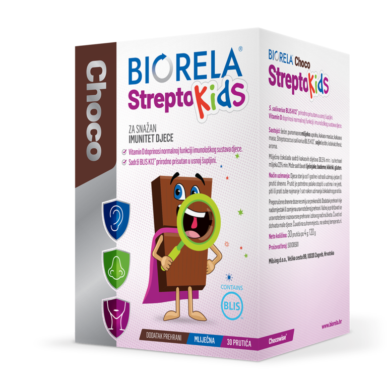 Biorela® Choco Strepto Kids osobito se preporučuje onim mališanima koji su posebno osjetljivi u sezoni virusa i bakterija.