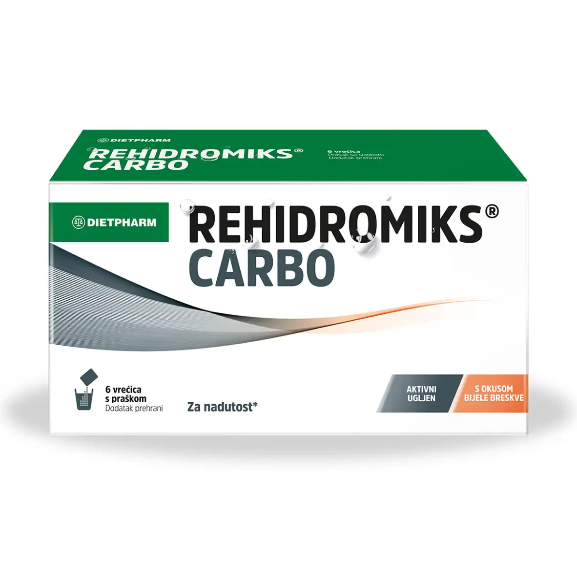 Rehidromiks® CARBO je dodatak prehrani u obliku praška za pripremu napitka s aktivnim ugljenom i prirodnom aromom bijele breskve. Za smanjenje nadutosti. Bez glutena. Bez laktoze. Veganski proizvod.