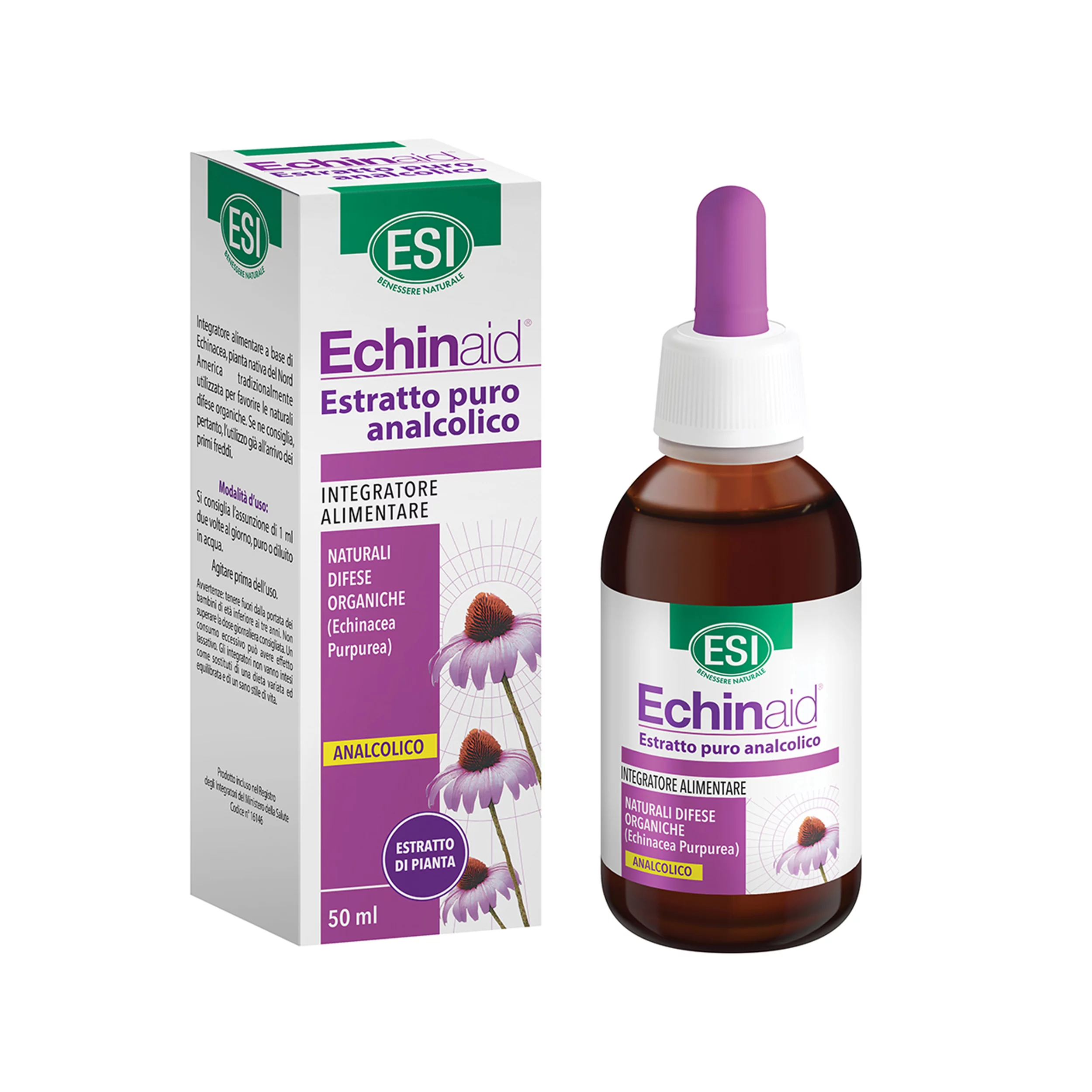 Echinaid bezalkoholne kapi je dodatak prehrani s prirodnim biljnim ekstraktom grimizne ehinaceje. Ekstrakt grimizne ehinaceje ima ulogu u održavanju prirodne obrambene uloge organizma.