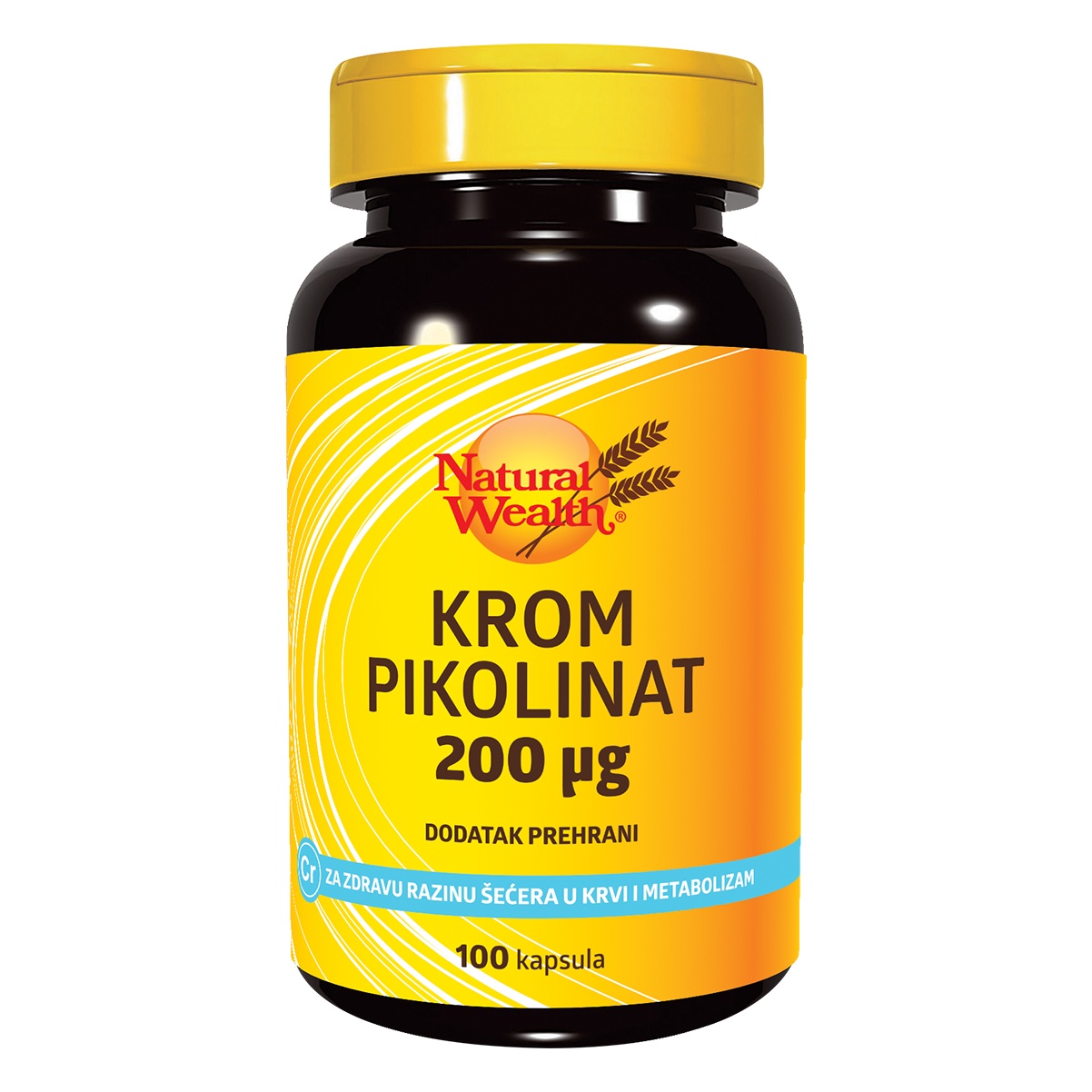 Natural Wealth Krom pikolinat 200 µg sadrži 100% organski oblik kroma visoke bioraspoloživosti za normalan metabolizam makronutrijenata i održavanje normalne razine glukoze u krvi.