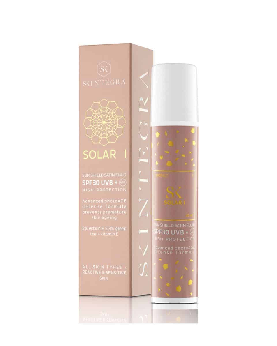 Skintegra Solar I je izrazito lagani dnevni fluid za zaštitu svih tipova kože od sunčevog zračenja (SPF30). Njegova najbitnija funkcija je visoka UV zaštita širokog spektra (UVA + UVB) uz hidrataciju i čuvanje barijerne funkcije kože.