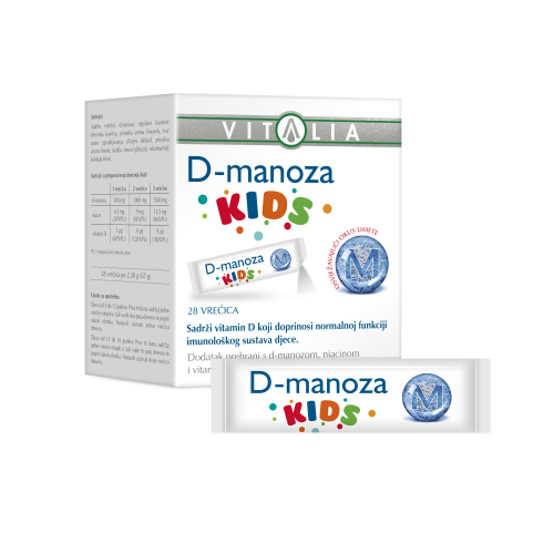 Vitalia D-manoza kids sadrži optimalnu dnevnu dozu d-manoze prilagođenu djeci.