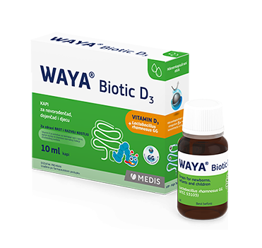 WAYA® Biotic D3 kapi brinu se za odgovarajući unos vitamina D3 koji je potreban za normalan rast i razvoj kostiju te doprinosi normalnoj funkciji imunološkog sustava.