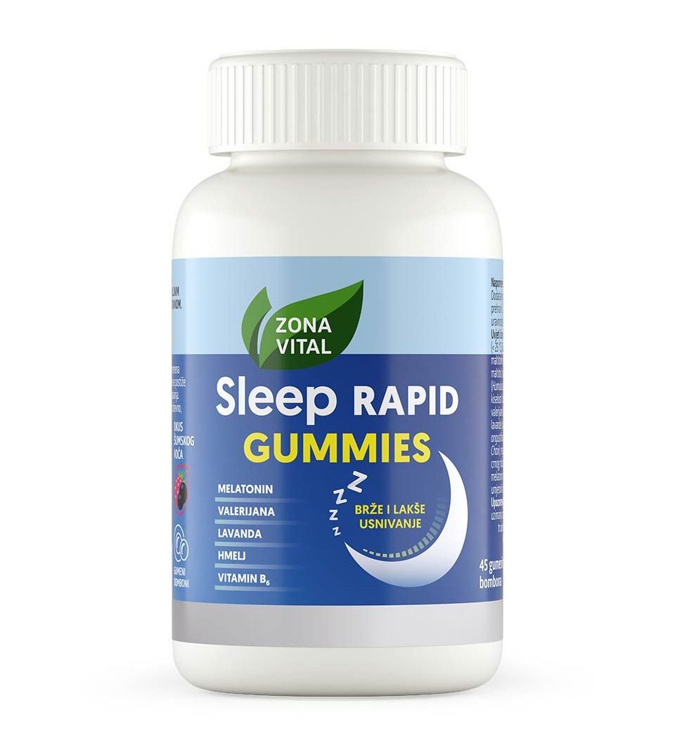 Zona Vital Sleep RAPID gummies je dodatak prehrani u obliku gumenih bombona, koji sadrži melatonin, valerijanu, hmelj, lavandu i vitamin B6. Sadrži melatonin koji doprinosi skraćenju vremena potrebnog za usnivanje. Blagotvorni učinak se postiže uzimanjem 1 mg melatonina kratko prije spavanja.